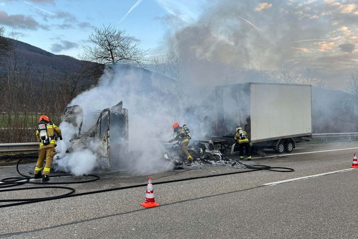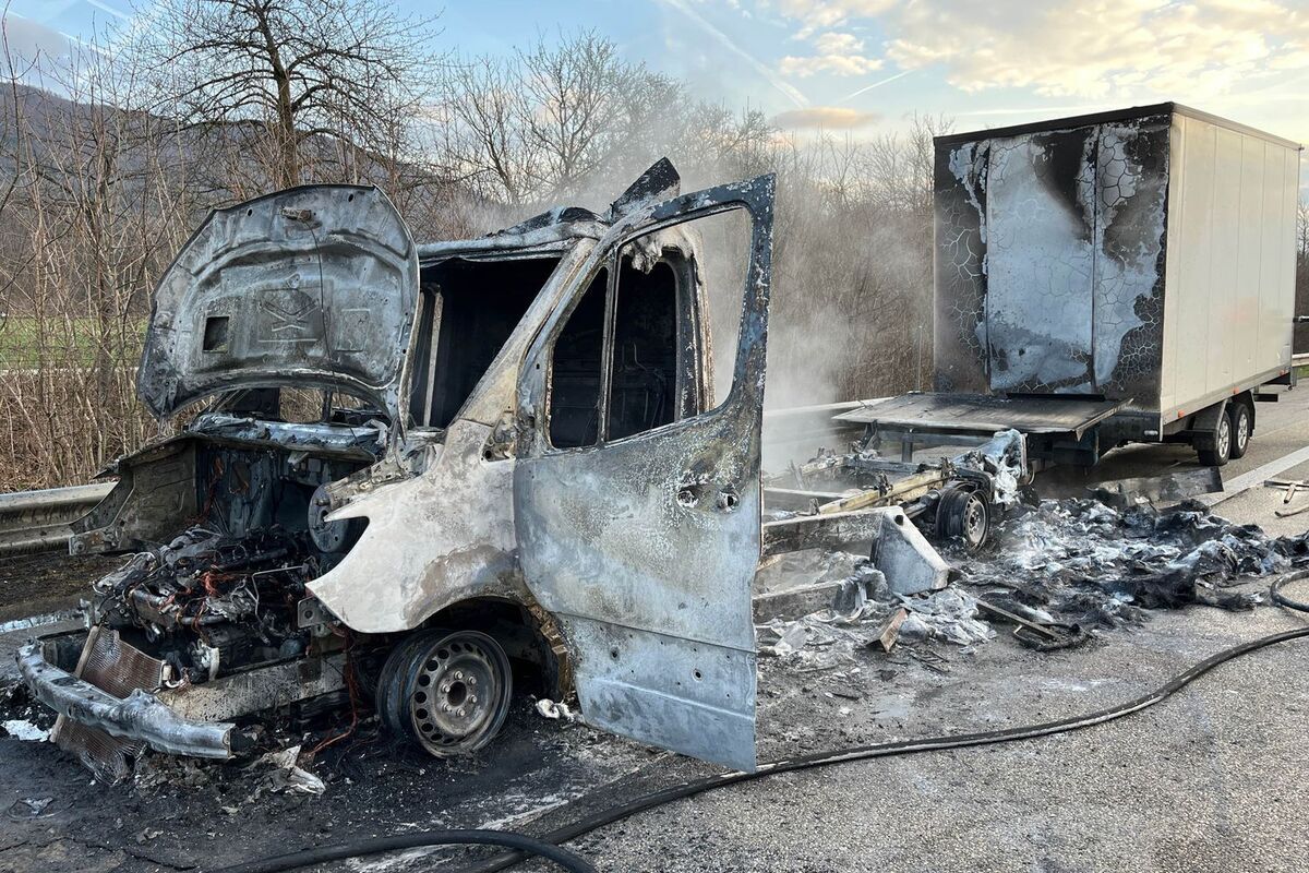 Am Freitagmorgen hat auf der A1 bei Kestenholz ein Lieferwagen mit Anhänger auf dem Pannenstreifen gebrannt. Verletzt wurde niemand.