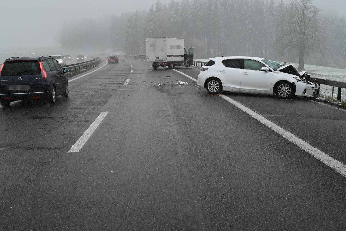 Gleichentags gegen 18:00 Uhr fuhr ein 33-jähriger Mann mit seinem Lieferwagen auf dem Normalstreifen von Gossau in Richtung Wil. Infolge des Rückstaus aufgrund der vorausgegangen Unfälle musste dieser seinen Lieferwagen kontinuierlich bis zum Stillstand abbremsen. Gleichzeitig wollte ein dahinterfahrender 32-jähriger Autofahrer vom Normalstreifen auf den Überholstreifen wechseln. Im selben Moment bemerkte er das Stauende vor sich, leitete eine Vollbremsung ein und lenkte stark nach rechts. Dabei prallte das Auto gegen das Heck des stillstehenden Lieferwagens des 33-jährigen Mannes. Der Autofahrer verletzte sich bei dem Unfall leicht. Er wurde durch den Rettungsdienst ins Spital überführt. An den Fahrzeugen entstand Sachschaden in Höhe von mehr als 20'000 Franken.