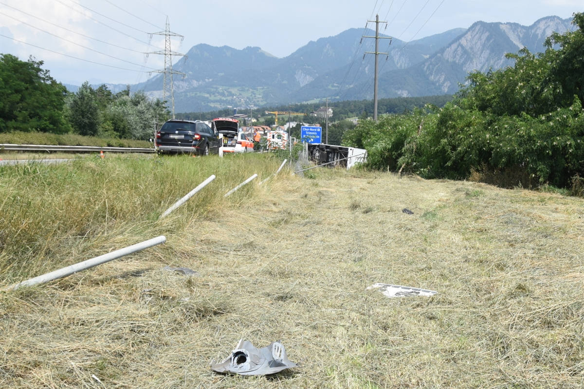 Am Mittwochnachmittag hat ein Wohnmobil auf der Autobahn A13 vor dem Anschluss Chur Nord den Wildschutzzaun durchschlagen. Es kam auf der Seite liegend im Wiesland zum Stillstand.