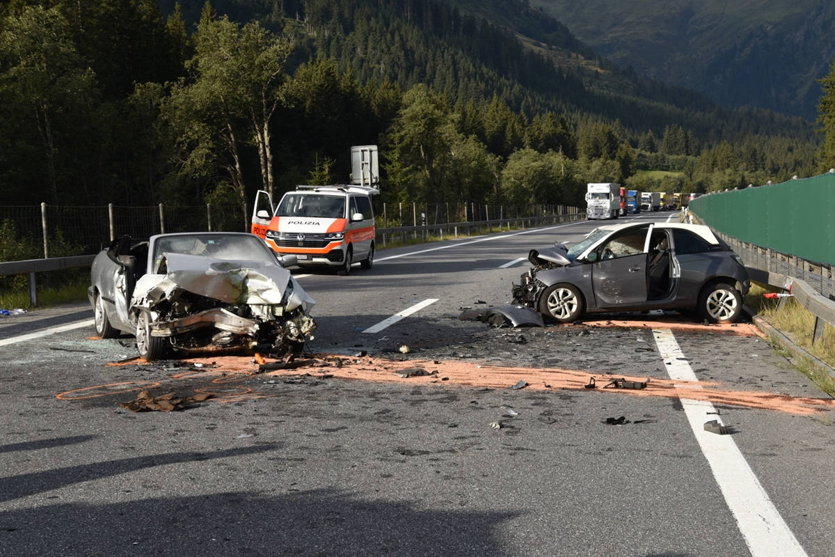 Drei verletzte Personen nach Frontalkollision auf der A13 bei Medels (Bildquelle: Kapo GR)