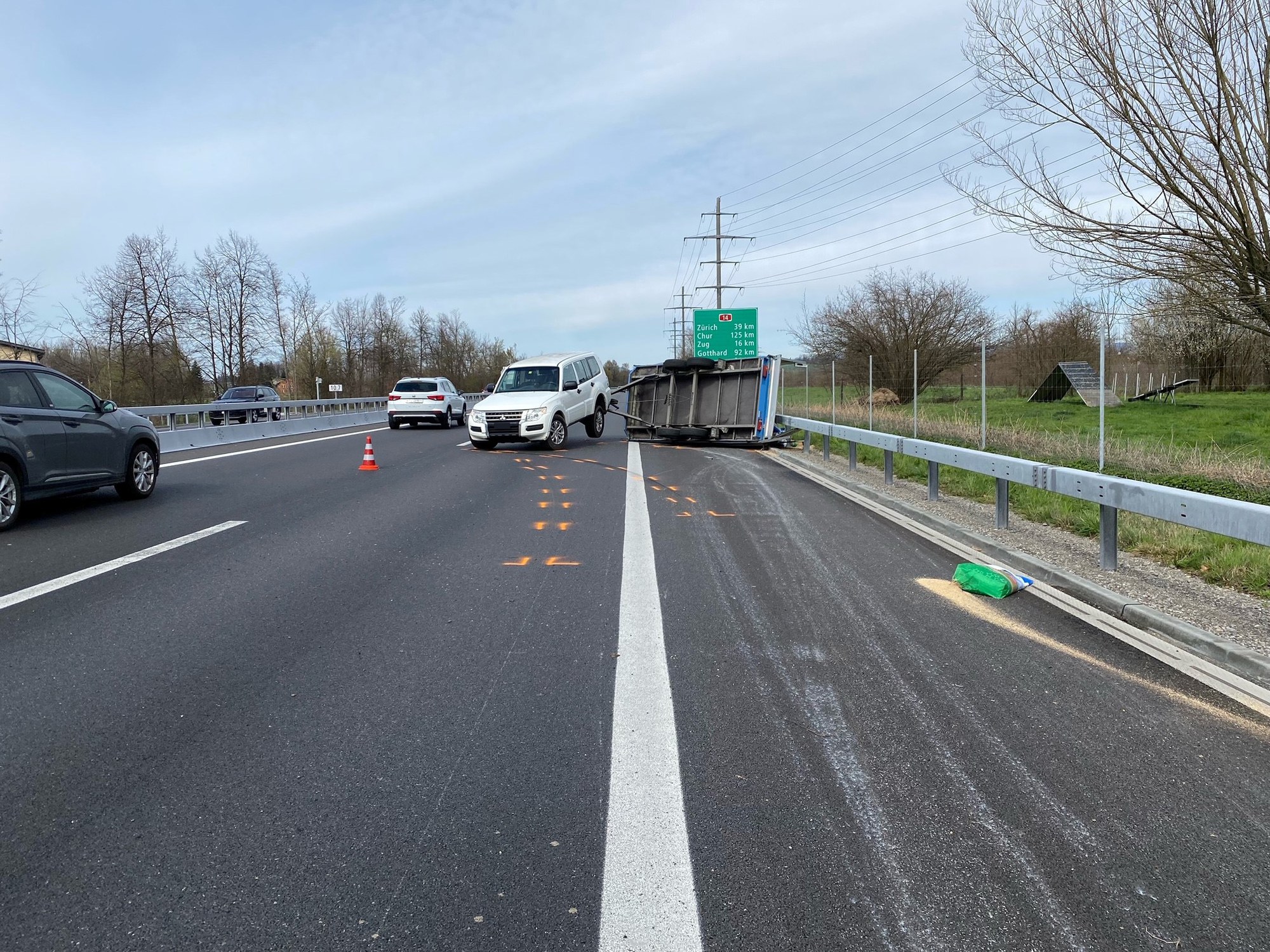 Anhänger kommt ins Schlingern und kippt zur Seite (Bildquelle: Kapo ZG)