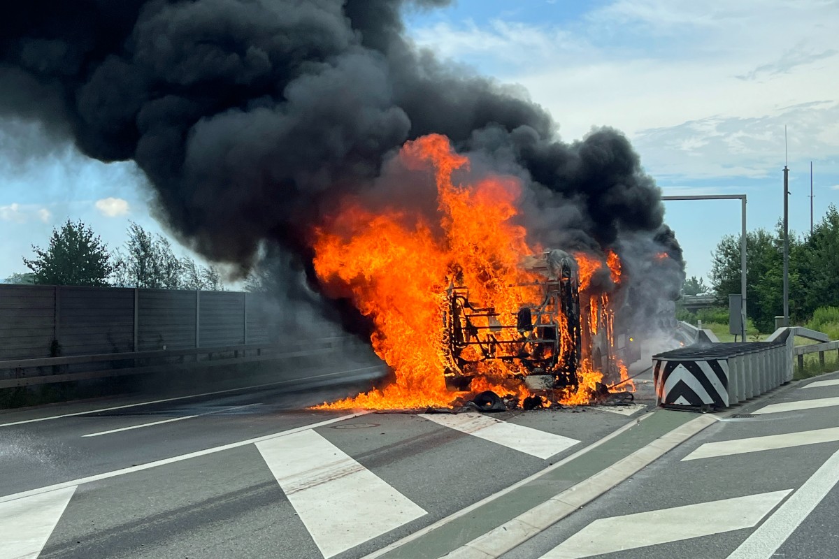 A2 Ebikon LU – Linienbus wegen technischem Defekt auf der Autobahn in Brand geraten