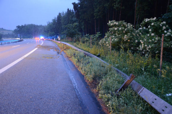 In der Folge geriet das Fahrzeug zurück auf die Fahrbahn und kollidierte mit der rechtsseitigen Leitplanke. Diese wurde auf einer Länge von ca. 30 Meter beschädigt.