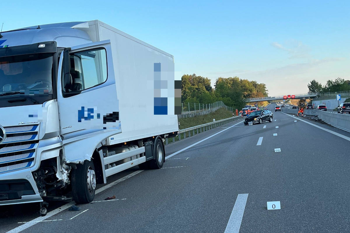 Kurz vor 5.30 Uhr fuhr ein 27-jähriger Chauffeur mit seinem Lastwagen auf der A51 Richtung Flughafen. Aus bislang nicht bekannten Gründen kollidierte sein Fahrzeug auf einem geraden Strassenstück mit der rechtsseitigen Leitplanke. Anschliessend schleuderte sein Gefährt über beide Fahrstreifen zurück und prallte heftig gegen die Mittelleitplanke, so dass diese auf den Überholstreifen der Gegenfahrbahn verschoben wurde. Nach diesem Anprall schleuderte der Lastwagen wieder Richtung Pannenstreifen. Dabei kam es zur Kollision mit dem Personenwagen eines 50 Jahre alten Lenkers, welcher auf dem Überholstreifen fuhr. Nachfolgend schleuderte der Lastwagen nochmals über die ganze Fahrbahn, bevor er nach einer erneuten Kollision mit der rechtsseitigen Leitplanke zum Stillstand kam.