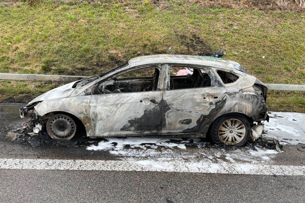 A7 Frauenfeld TG – Auto während der Fahrt auf der Autobahn in Flammen aufgegangen