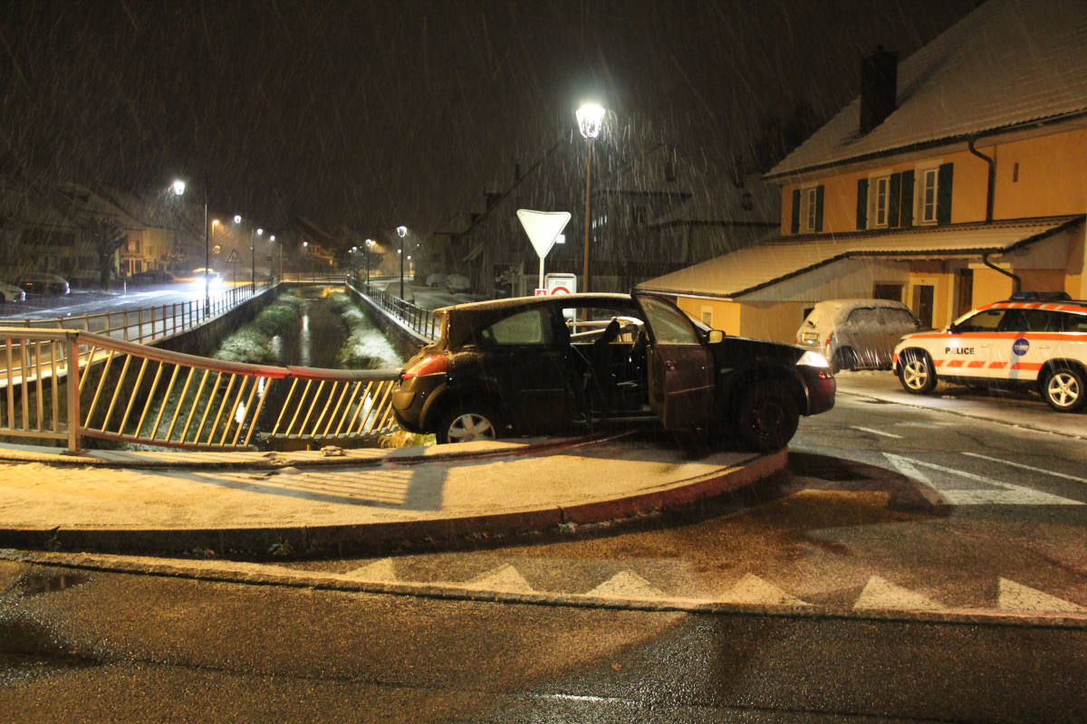 Das Auto fuhr von der Route de Porrentruy in Richtung Place de la Liberté und kollidierte mit der Barriere, die den Kreisel vom Fluss trennt. Das Fahrzeug stürzte nur knapp nicht in die Allaine.