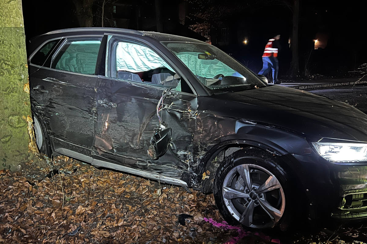 Alkoholisiert mit Strassenlaterne, Steinblöcke und Baum kollidiert
