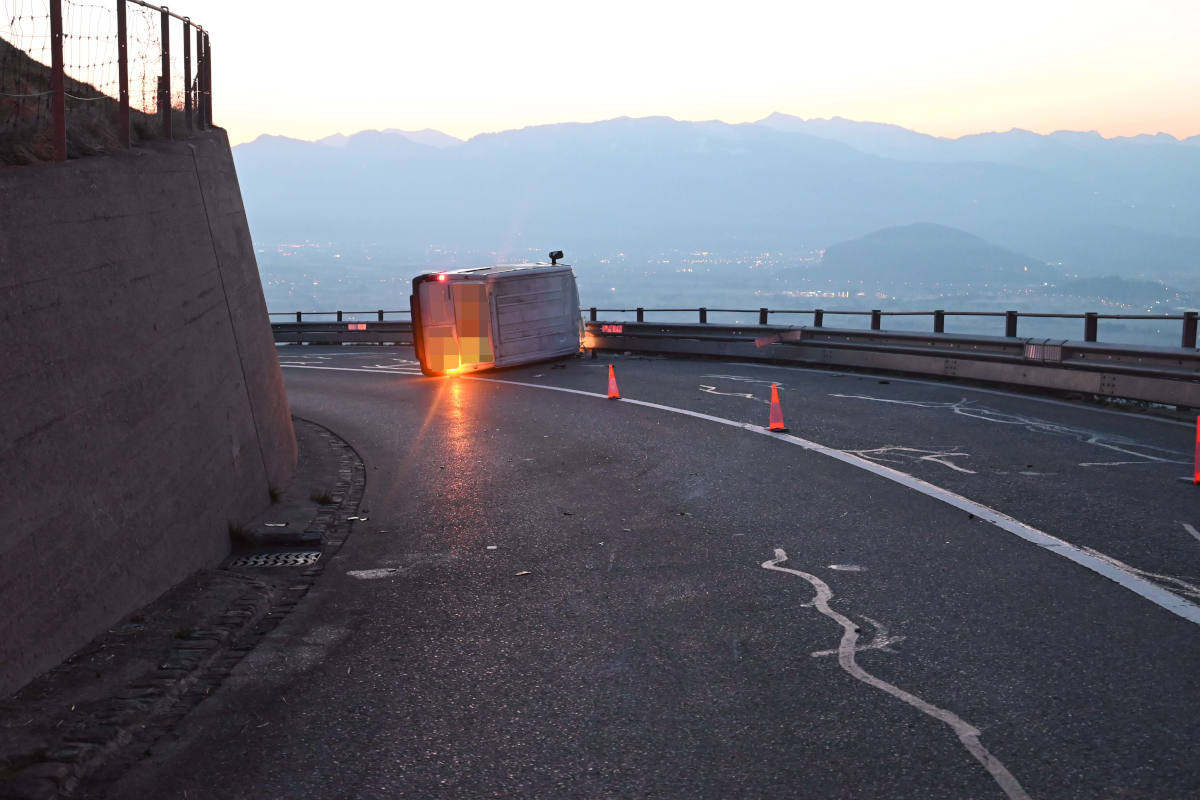 Am Samstag (05.03.2022), kurz vor 6 Uhr, ist es auf der Stossstrasse zu einem Selbstunfall eines Lieferwagens gekommen. Der 25-jährige Fahrer wurde leicht verletzt und vom Rettungsdienst ins Spital gebracht. Er war in fahrunfähigem Zustand unterwegs. Es entstand hoher Sachschaden.