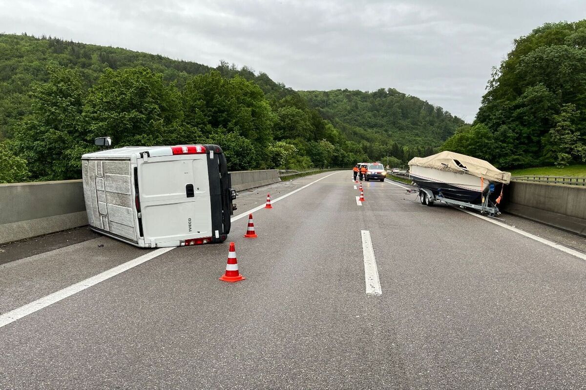 Der Sachentransportanhänger, auf welchem sich ein Sportboot befand, kippte auf die rechte Seite und kollidierte mit der rechtsseitigen Leitplanke. Dadurch drehte sich der Lieferwagen, kippte auf die linke Seite und kollidierte ebenfalls mit der rechtsseitigen Leitplanke. Der Lieferwagen kam auf der linken Seite liegend zum Stillstand.