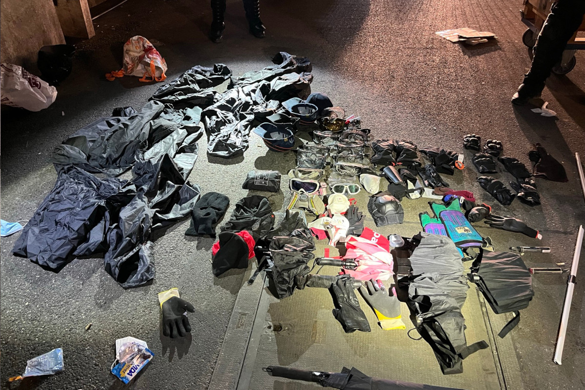 Sichergestelltes Material von Teilnehmenden der unbewilligten Kundgebung in Bern. (Bildquelle: Kantonspolizei Bern)
