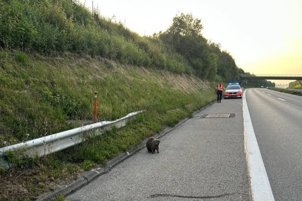 Bern – Polizei hilft einem Biber auf der Autobahn