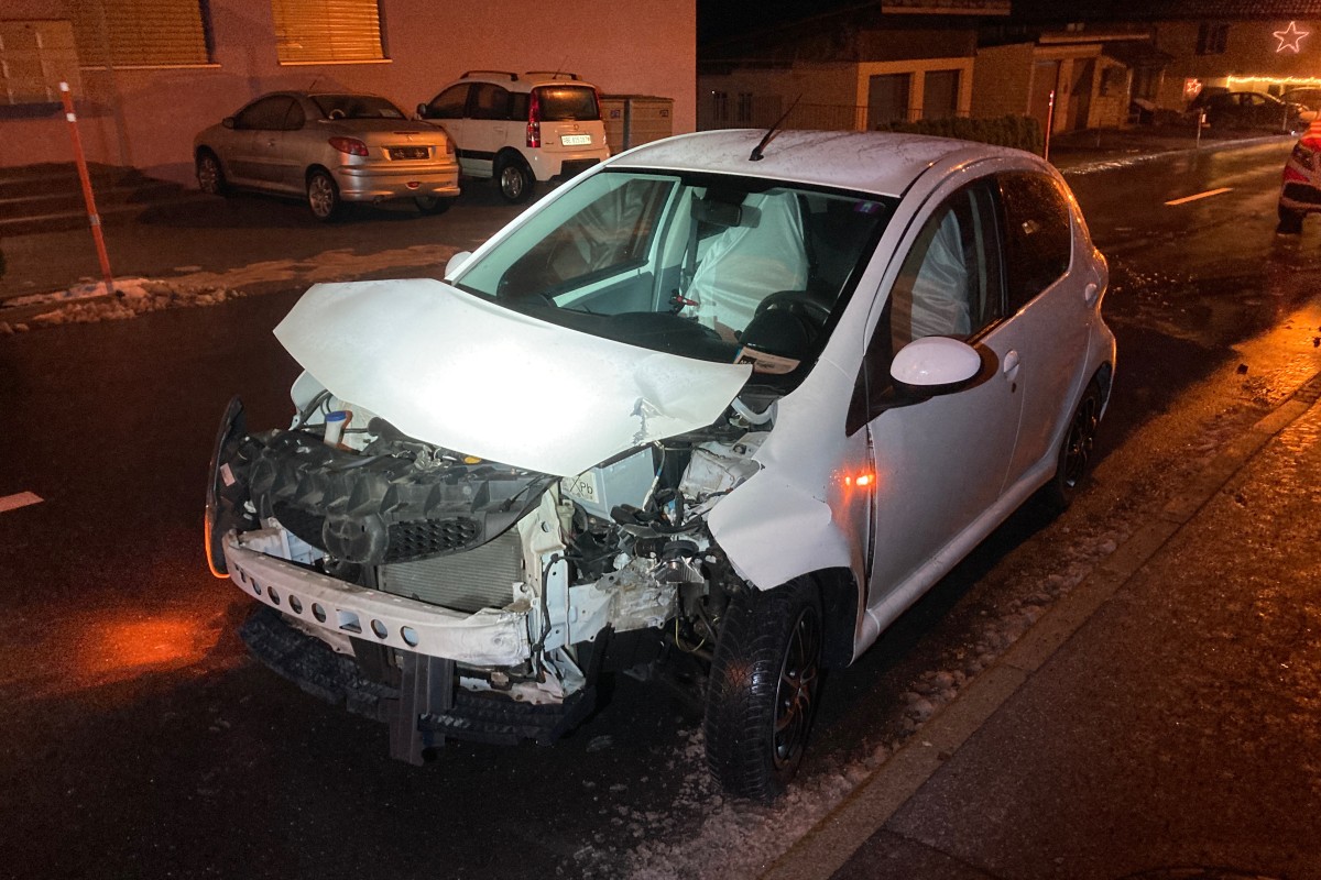 Dieses geriet rechts von der Fahrbahn und kollidierte frontal mit einer Gartenmauer. Beim Unfall wurde niemand verletzt. Das Auto wurde total beschädigt.