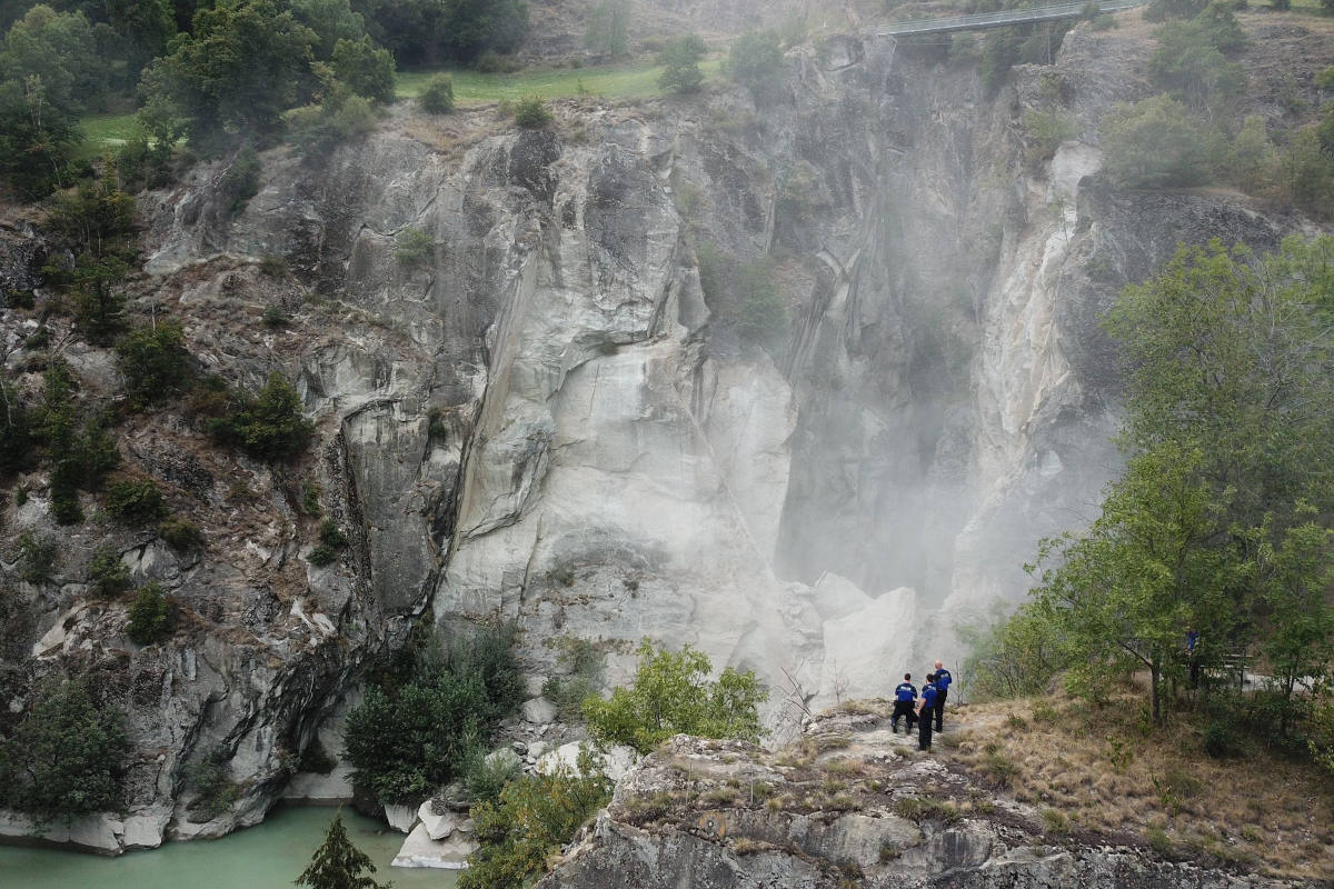 Felssturz in der Massaschlucht in Bitsch VS oberhalb des Kraftwerks (Bildquelle: Kapo VS)