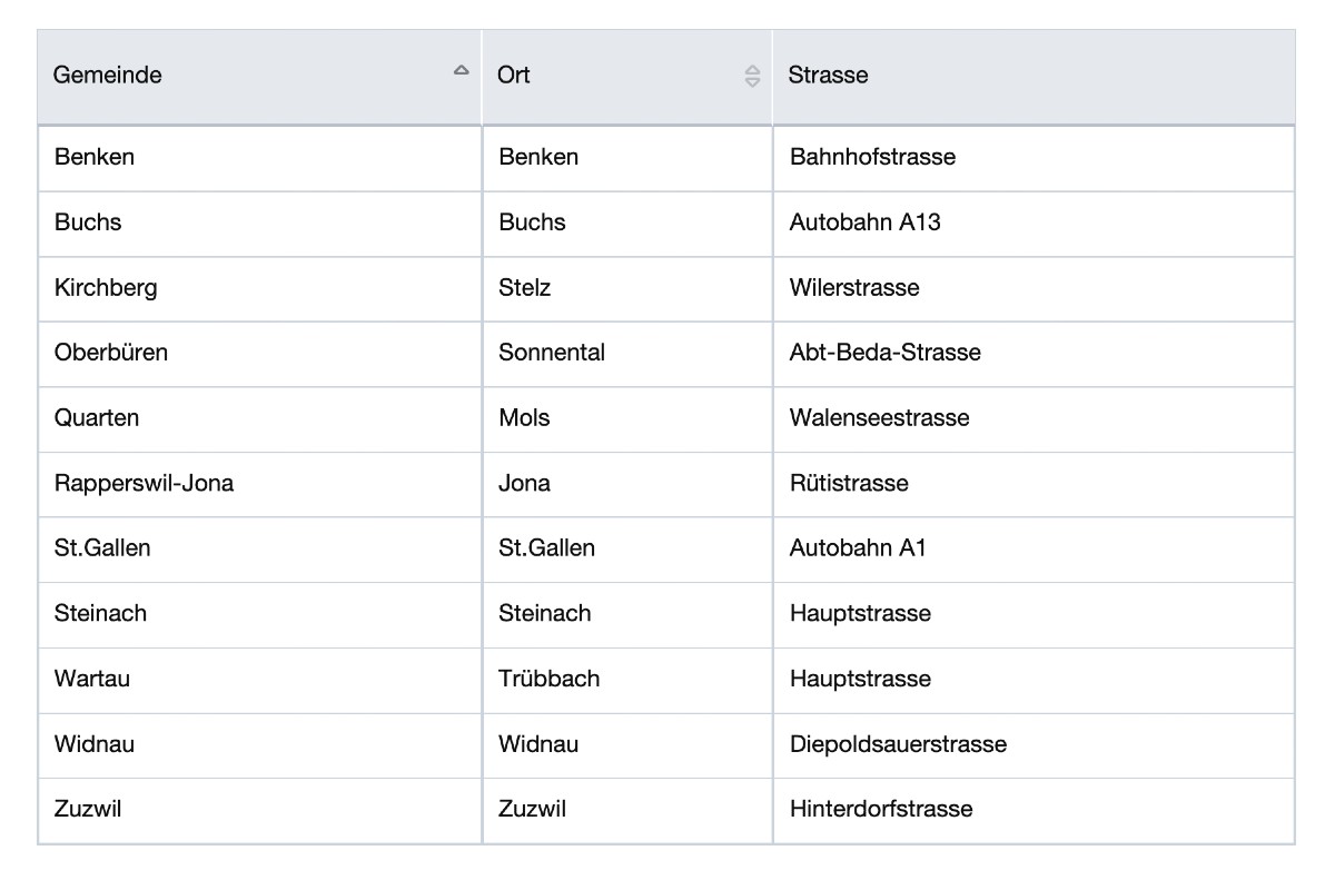 Die kantonspolizei st.gallen veröffentlicht als Massnahme zur Erhöhung der Verkehrssicherheit die Standorte der semistationären Messanlagen im Kanton St.Gallen (ohne Stadt St.Gallen). Die Aktualität der Liste wird nicht garantiert. Es kann sein, dass einzelne Standorte zwischen den Publikationsdaten versetzt werden.