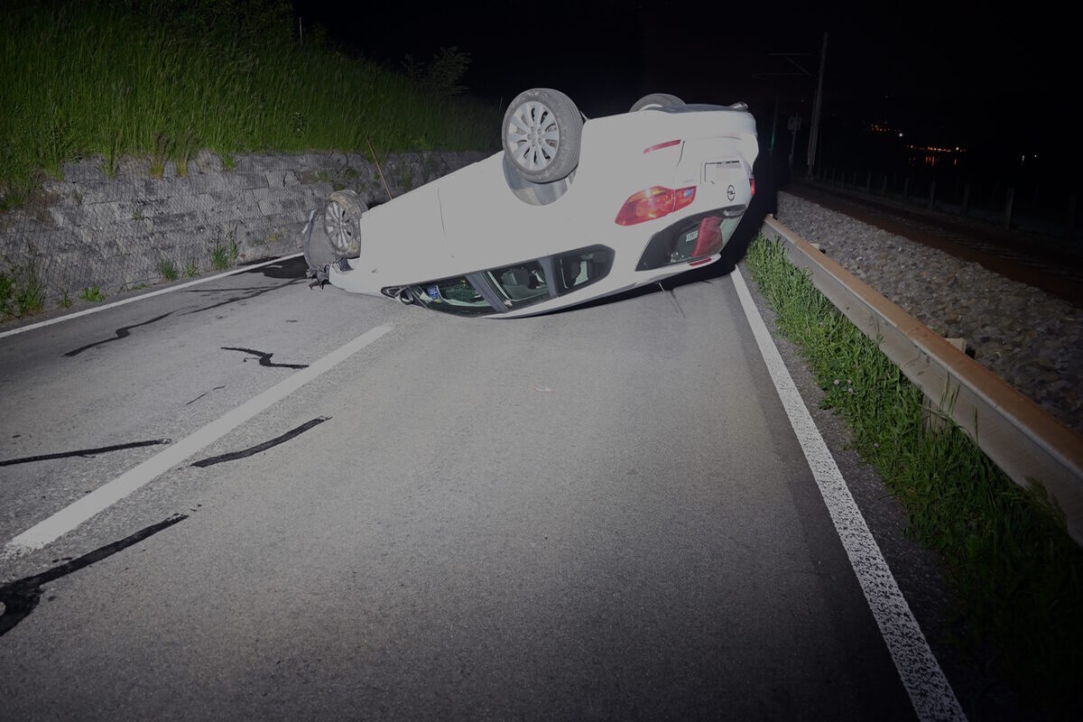 Am Samstag (11.05.2024), kurz nach 22:20 Uhr, kam es auf der Uznacherstrasse zu einem Selbstunfall. Ein 49-jähriger Mann verlor die Herrschaft über sein Auto. Dieses überschlug sich und kam auf dem Dach liegend zum Stillstand. Er und sein Beifahrer wurden leicht verletzt. Dem Fahrer wurde der Führerausweis abgenommen.