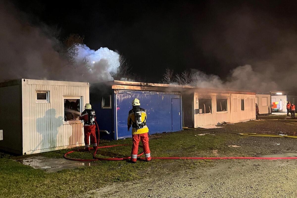 Kurz nach 18.00 Uhr meldete Anwohnerin Feuer in der Unterkunft für Asylsuchende auf dem Areal des Alten Bahnhofs in Buchs. Beim Eintreffen der sofort alarmierten Einsatzkräfte schlugen meterhohe Flammen aus der Containerunterkunft. Die Feuerwehr löschte das Feuer und verhinderte ein Ausbreiten des Feuers auf einen weiteren Containerbau. Mehrere zusammengebaute Wohncontainer brannten aus oder sind durch den Rauch beschädigt worden.