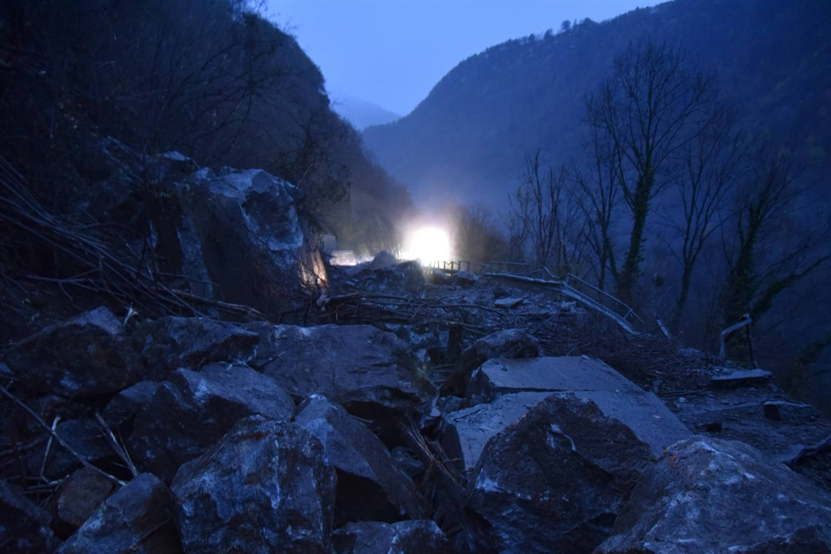 Kurz vor 06.30 Uhr meldete eine Frau der Kantonspolizei Graubünden, dass sie bei Buseno einen grossen Knall gehört habe und nun Rauch aufsteige. Aufgrund dieser Meldung rückten die Einsatzkräfte der Feuerwehren Bassa Mesolcina und Calanca sowie Polizeipatrouillen aus. Vor Ort angekommen, stellten sie fest, dass ein Felssturz die Strasse zwischen der Abzweigung Castaneda und Molina auf einer Länge von über 150 Metern verschüttet und beschädigt hatte. Folglich wurde das Tiefbauamt Graubünden beigezogen, welches zur weiteren Beurteilung einen Geologen hinzuzog. Nach ersten Feststellungen wurde niemand verschüttet.