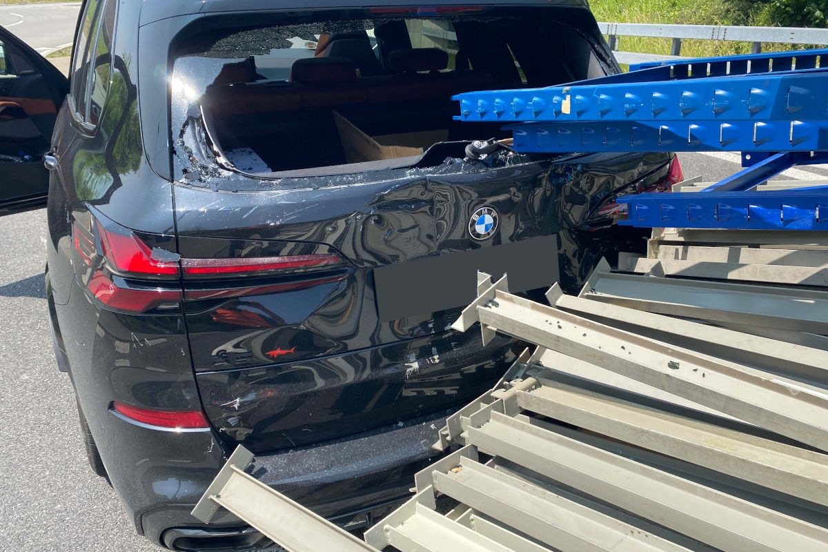 Der Unfall ereignete sich am Mittwochmittag (11. Juni 2025), kurz nach 12:30 Uhr, bei der Autobahnausfahrt Lindencham. Nachdem der 56-jährige Autofahrer verkehrsbedingt stark bremsen musste, ist die auf einem Sachentransportanhänger mitgeführte Ladung ins Rutschen gekommen. Diese zerschmetterte die Heckscheibe des Autos und verursachte zudem ein Schaden am Fahrzeugheck.
