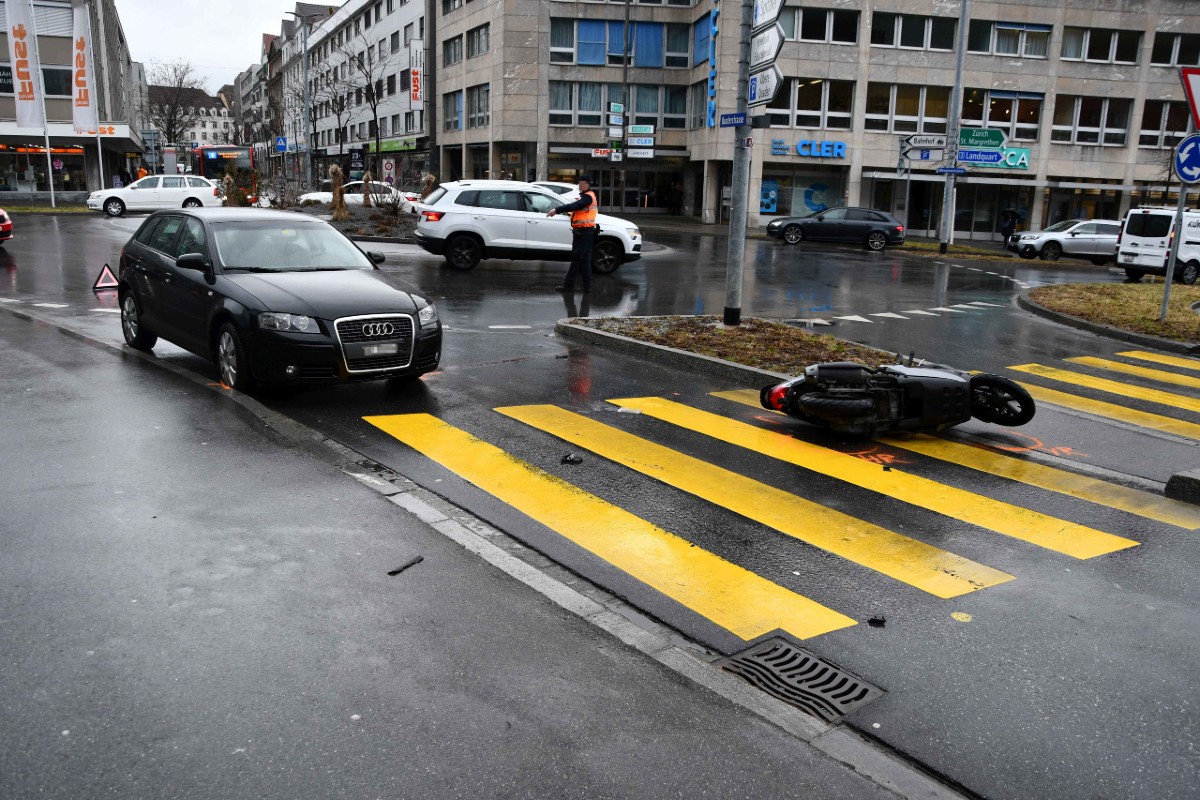 Auf der Quaderstrasse in Chur ist es zu einem Verkehrsunfall zwischen einem Auto und einem Roller gekommen. Dabei verletzte sich die Rollerfahrerin.