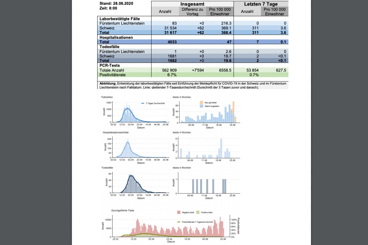 Täglicher Situationsbericht zur epidemiologischen Lage in der Schweiz und im Fürstentum Liechtenstein