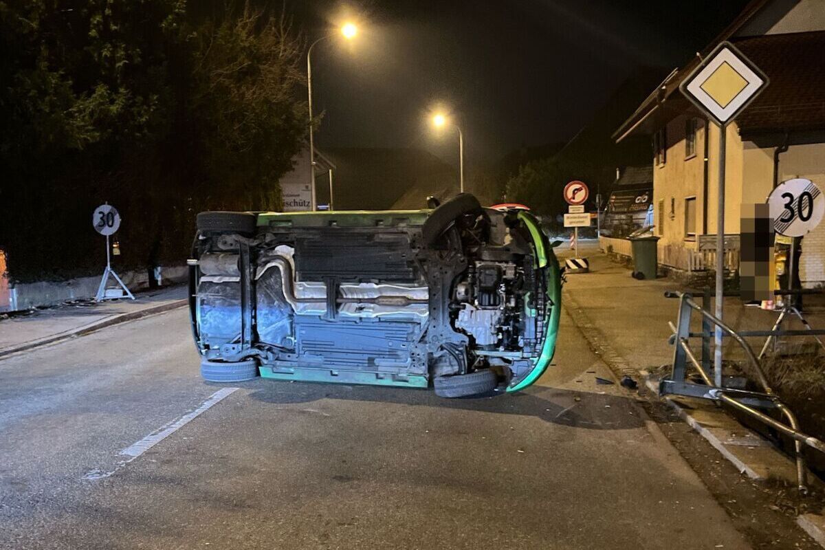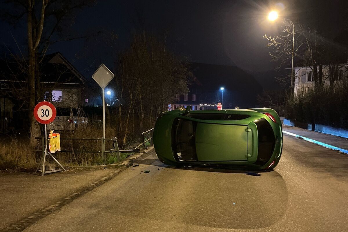 Dabei kippte das Auto auf die Seite, bevor es quer zur Strasse zum Stillstand kam. Der Fahrzeuglenker konnte das Auto selbständig und unverletzt verlassen. Wie sich zeigte, dürfte er das Auto in alkoholisiertem Zustand gelenkt haben.