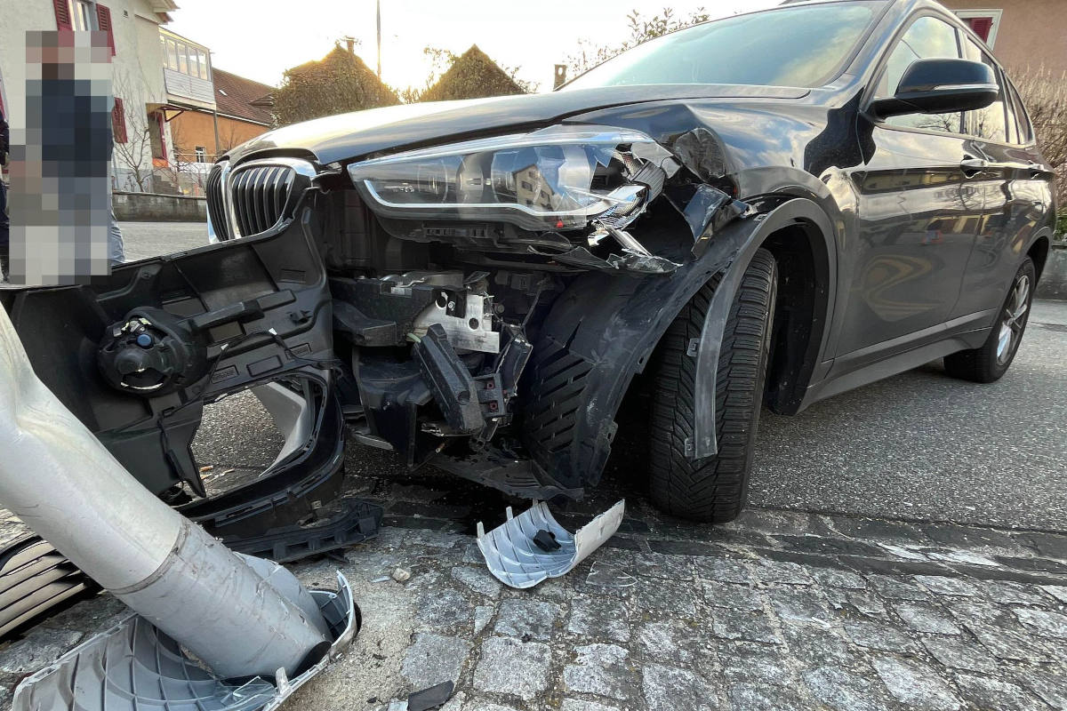 Am Samstag, 25. Februar 2023, um zirka 16.35 Uhr, fuhr ein Automobilist in Derendingen von der Luzernstrasse herkommend in die Steinmattstrasse. Kurz darauf prallte er links von ihm frontal in einen Lichtkandelaber.
