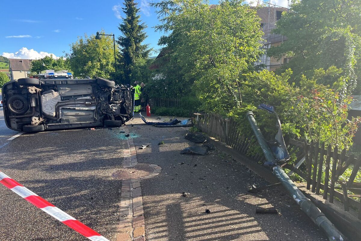 Gemäss den bisherigen Erkenntnissen der Polizei Basel-Landschaft fuhr der 57-jährige Lenker mit seinem Ford Transit auf der Hauptstrasse in Diegten in Richtung Eptingen. Dabei fuhr er über das rechte Trottoir und kollidierte in der Folge mit einem Kandelaber und einem dort befindlichen Gartenzaun. Durch die Wucht des Aufpralls kippte der Lieferwagen auf die linke Fahrzeugseite. Passanten halfen dem Lenker aus dem Fahrzeug.