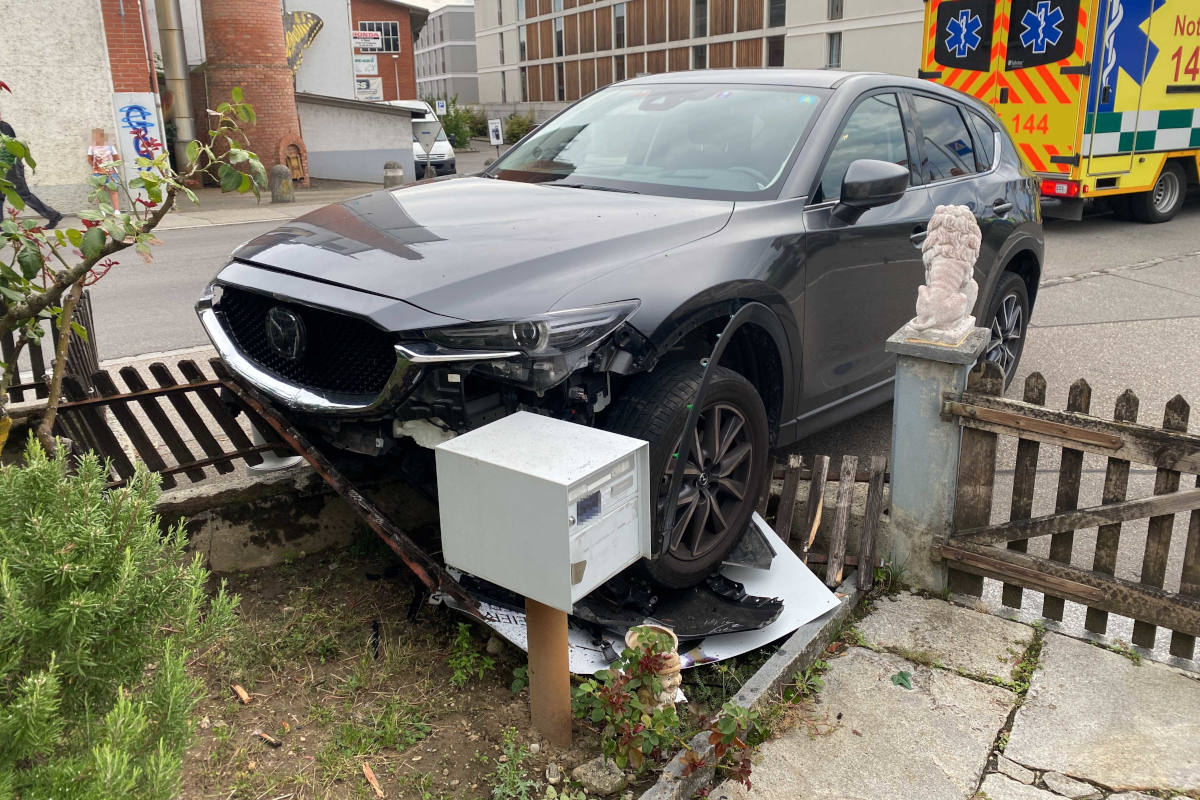 Der Lenker blieb unverletzt. Am Fahrzeug sowie an der Gartenanlage entstand mittelgrosser Sachschaden. Die Kantonspolizei hat die Ermittlungen zur Klärung des genauen Unfallhergangs aufgenommen. Dem Lenker wurde der Führerausweis zuhanden des Strassenverkehrsamtes abgenommen.