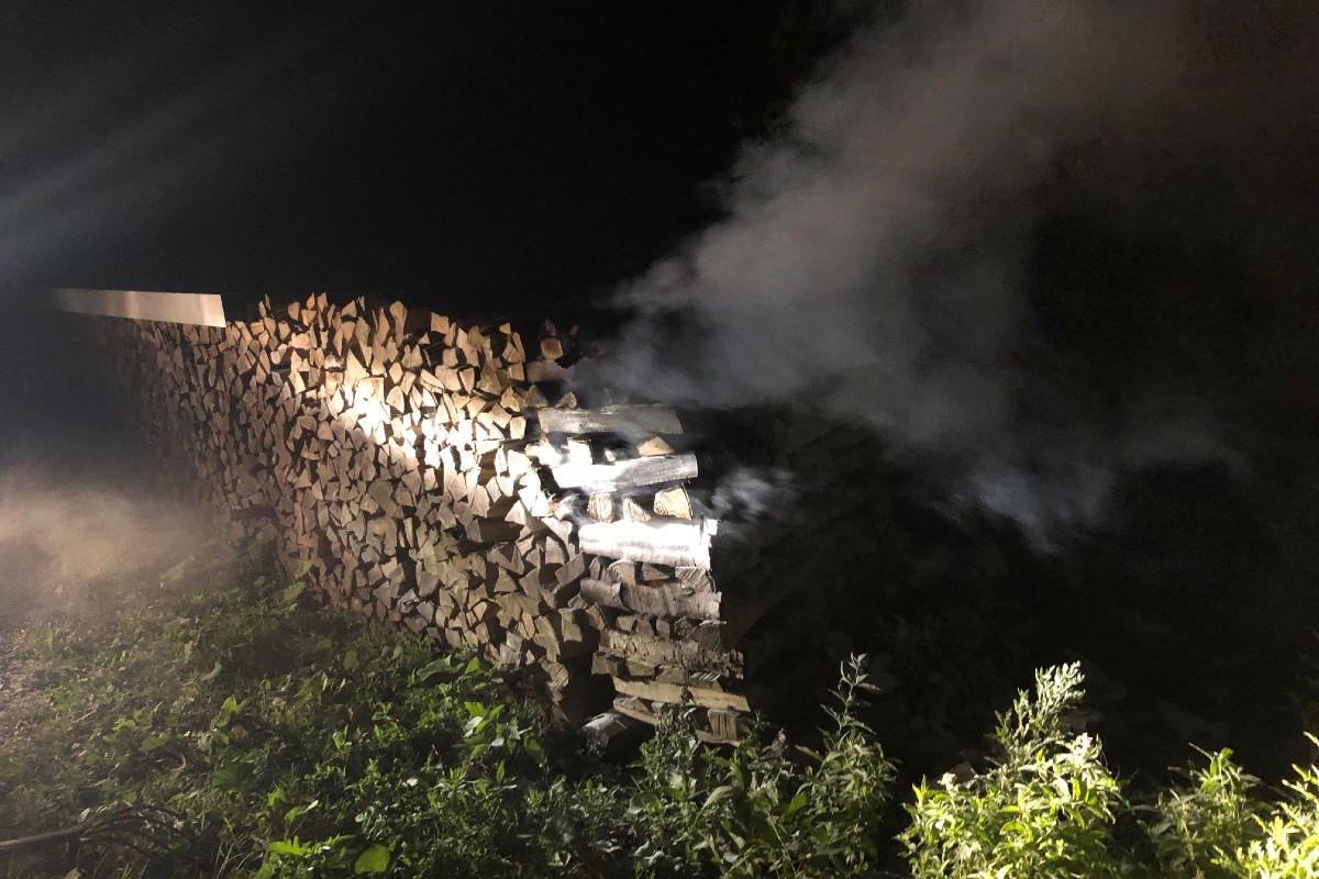 Am späten Freitagabend (13.08.2021) entdeckten Passanten eine brennende Scheiterbeige an der Waldstrasse in Eggerstanden. Sofort bekämpften sie das Feuer mit einem Feuerlöscher.