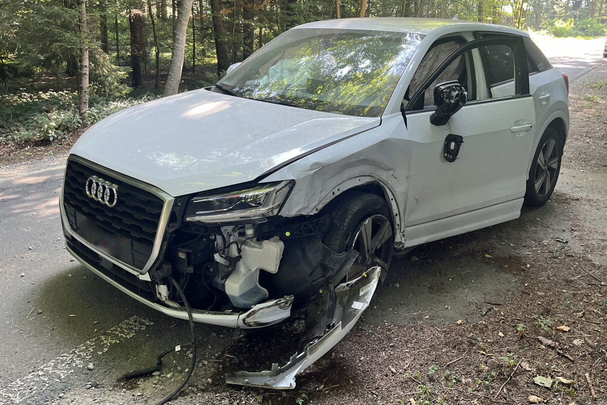 Der weisse Audi weist massive Front- und Seitenschäden auf (Bildquelle: Luzerner Polizei)