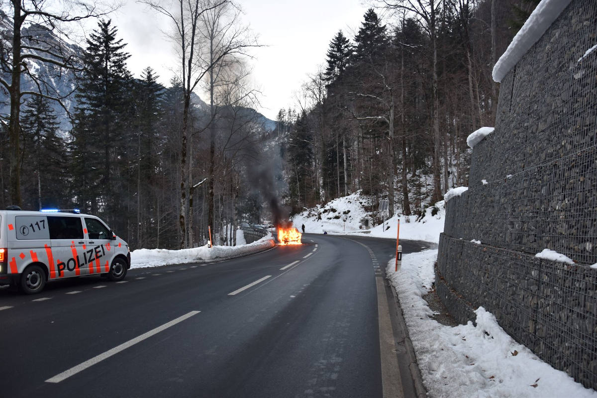 Fahrzeugbrand in Engelberg (Bildquelle: Kantonspolizei Obwalden)