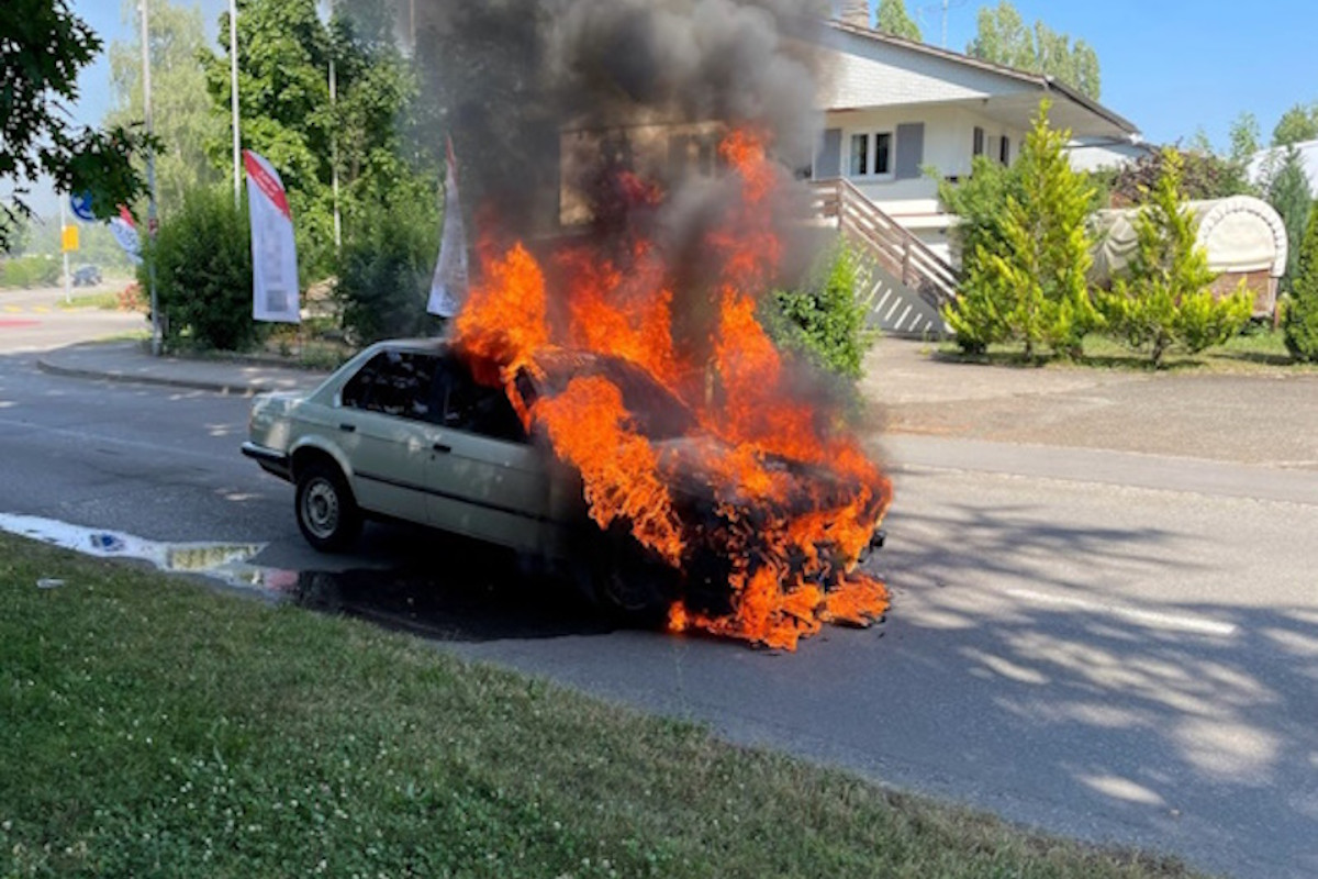 Am Sonntag, 22. Juni 2025, gegen 16:30 Uhr rückten die Feuerwehr und die Kantonspolizei Freiburg nach Estavayer-le-Lac an die Route des Lacustres aus, weil ein Fahrzeug mitten auf der Fahrbahn in Brand geraten war.