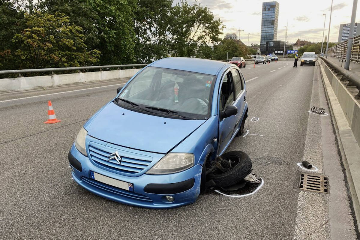 liegengebliebenes Unfallfahrzeug in Basel (Bildquelle: Kantonspolizei Basel-Stadt)