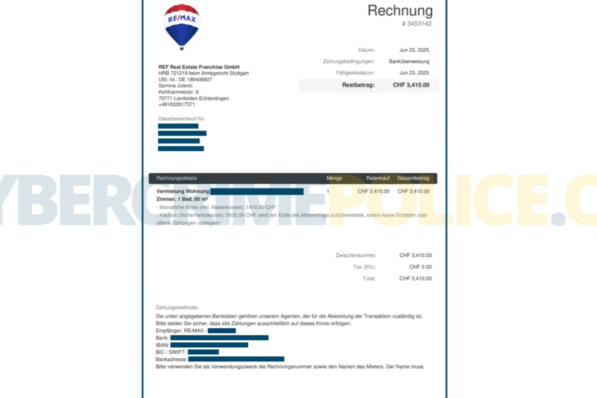 Wohnungsbetrug mit falschen RE/MAX-Inseraten (2) (Bildquelle: Cybercrimepolice)