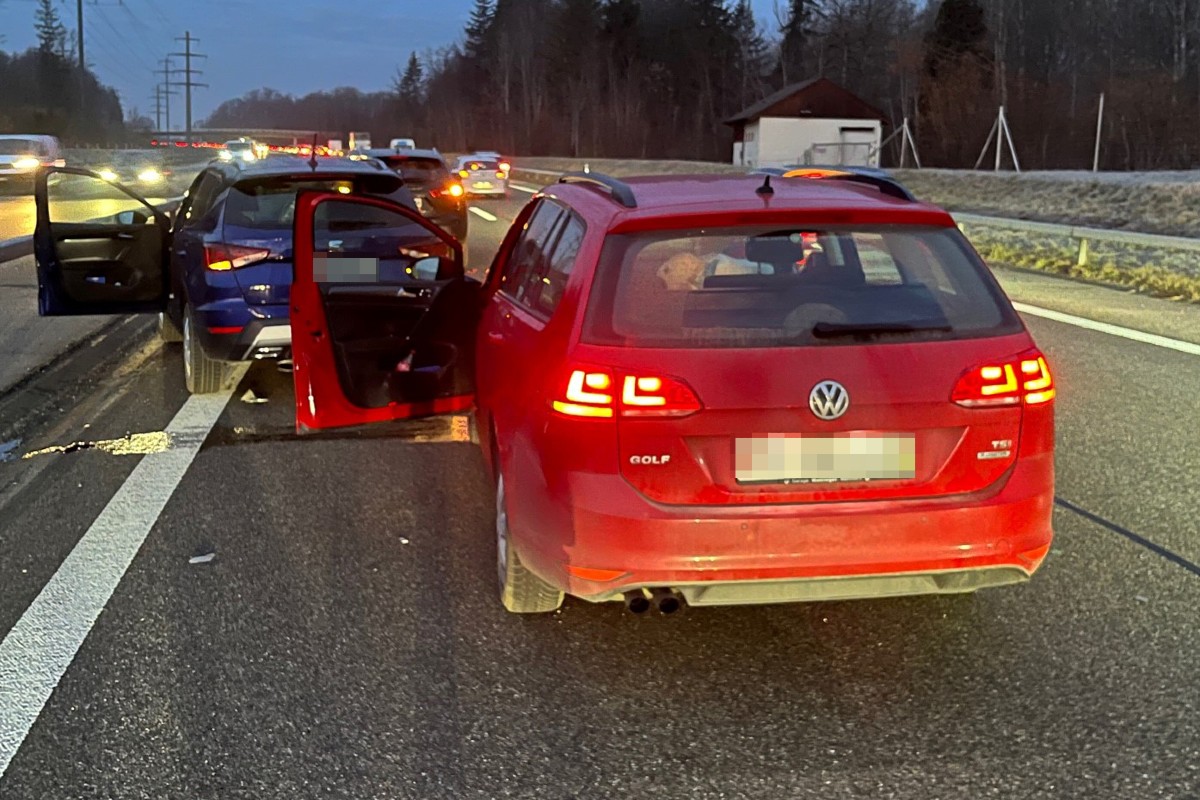 Ein 33-jähriger Autofahrer war gegen 6.40 Uhr auf der Autobahn A7 in Richtung Frauenfeld unterwegs. Als ein vor ihm fahrender, 58-jähriger Autofahrer verkehrsbedingt abbremsen musste, konnte er gemäss den Erkenntnissen der Kantonspolizei Thurgau nicht mehr rechtzeitig reagieren und verursachte eine Auffahrkollision. Durch den Aufprall wurde das Auto des 58-Jährigen in ein weiteres Fahrzeug einer 57-Jährigen geschoben.