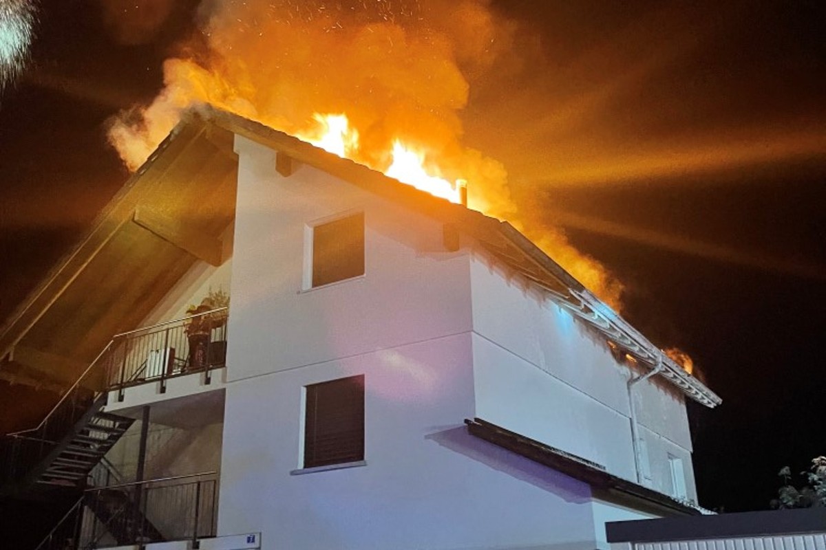 Kurz nach 22.00 Uhr am gestrigen Freitagabend ging bei der Einsatzzentrale der Schaffhauser Polizei die Meldung ein, dass bei einem Mehrfamilienhaus in Wilchingen der Dachstock brennt.