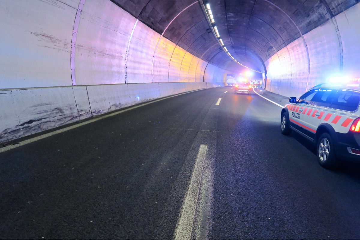 In einer Rechtskurve kam es zu einer Kollision mit der linken Tunnelwand. Die Ambulanz brachte die Lenkerin und ihr Kind zur Kontrolle ins Kantonsspital Glarus.