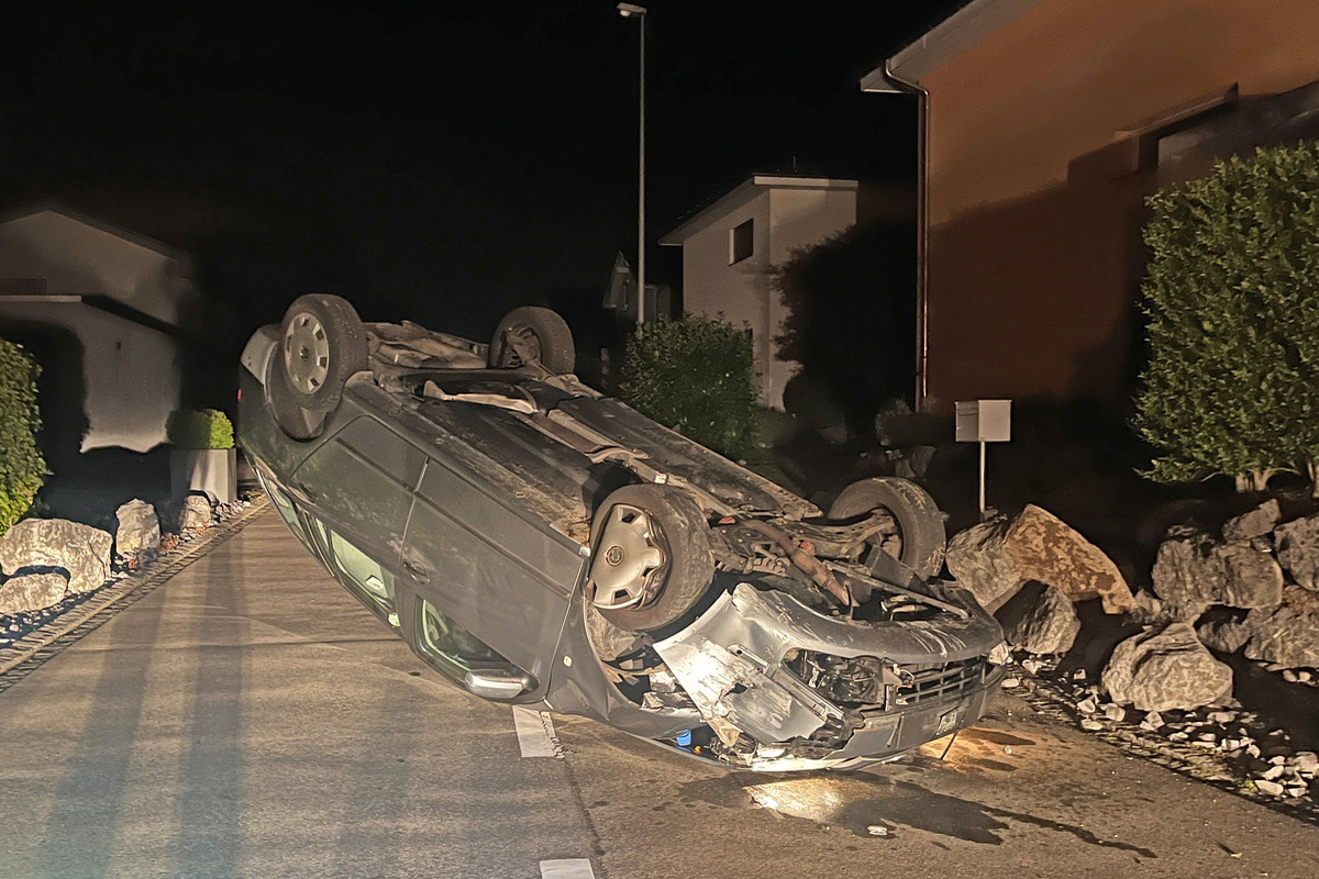 Ein alkoholisierter Autofahrer hat in der Nacht auf Samstag einen Selbstunfall in Frasnacht verursacht. Das Auto kam auf dem Dach liegend zum Stillstand. Er wurde nicht verletzt.