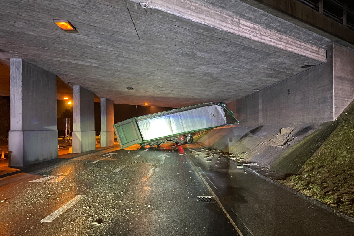Frauenfeld TG - Unter Autobahnbrücke verkeilt - Betroffene Strassen mehrere Stunden gesperrt