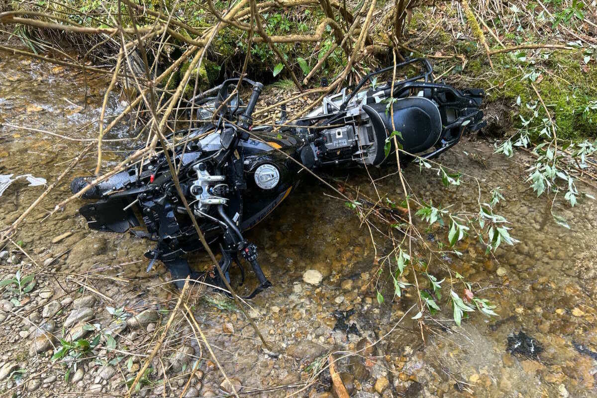 Der 43-Jährige fuhr mit seinem Motorrad von Fischingen kommend in Richtung Mühlrüti. Nach einem Überholmanöver verlor er in einer nachfolgenden Linkskurve, kurz nach der Kantonsgrenze, die Herrschaft über sein Motorrad und kam zu Fall. Dabei geriet sein Motorrad über den rechten Fahrbahnrand, schlittere das angrenzende Wiesenbord hinunter und kam im Bach liegend zum Stillstand.