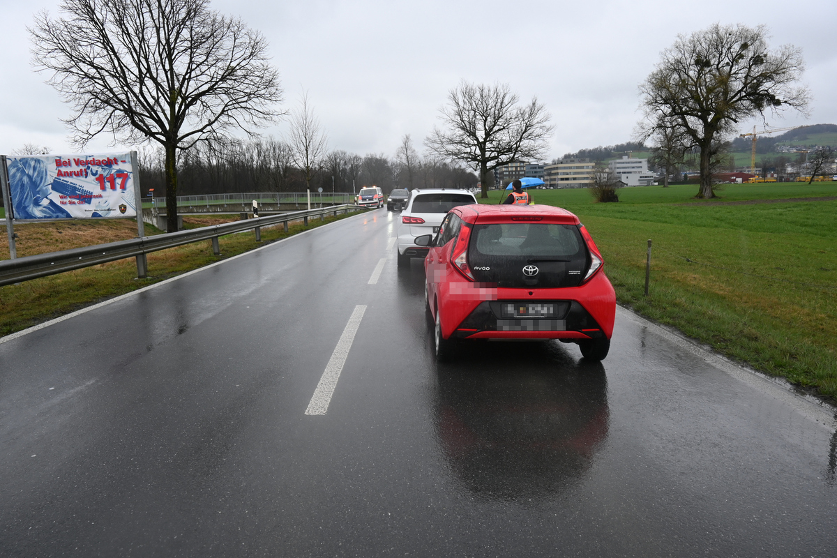 Gegen 11:20 Uhr musste eine Frau ihren SUV verkehrsbedingt fast zum Stillstand bringen. Eine hinter ihr fahrende Frau bemerkte zwar das Bremsmanöver, konnte ihren Kleinwagen aber nicht mehr rechtzeitig anhalten. Es kam zum Zusammenstoss der beiden Personenwagen.