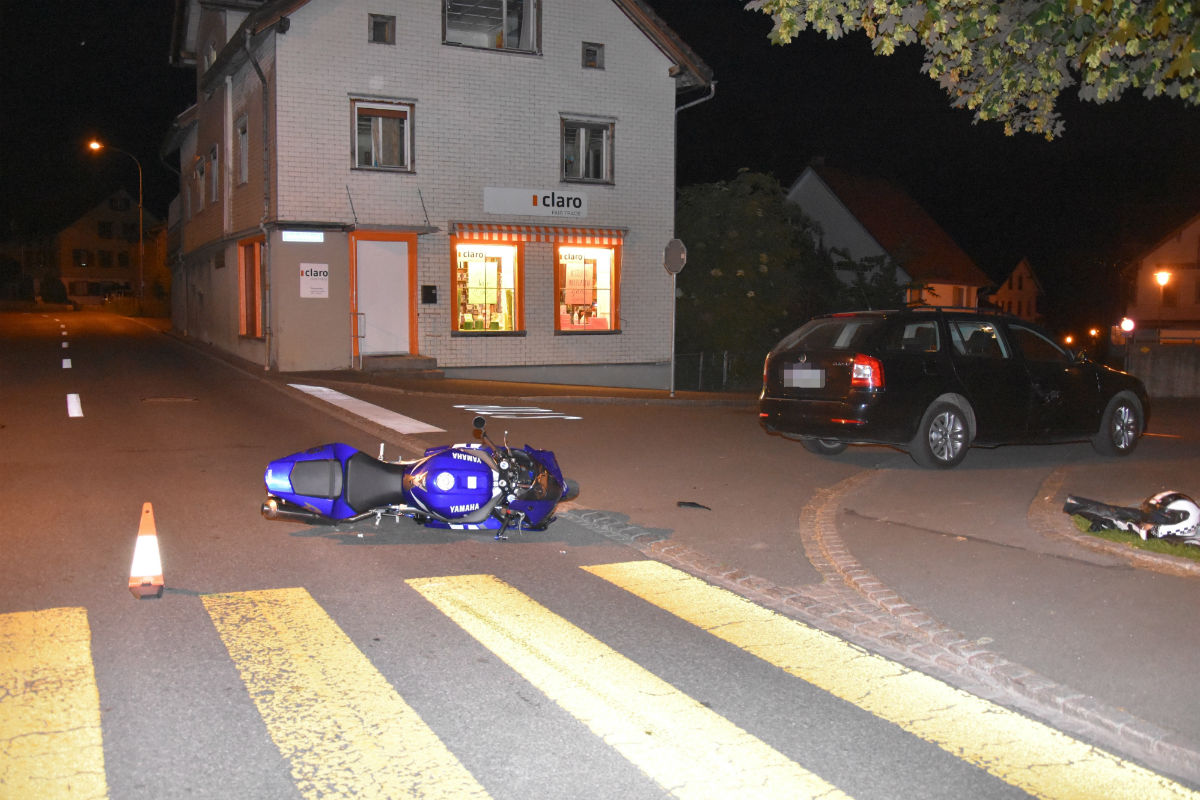 Durch die Wucht des Aufpralls wurde das Motorrad weggeschleudert und der Motorradfahrer stürzte zu Boden. Dabei verletzte er sich und musste durch die Rettung ins Spital gebracht werden. An den beiden Fahrzeugen entstand Sachschaden von mehreren tausend Franken.