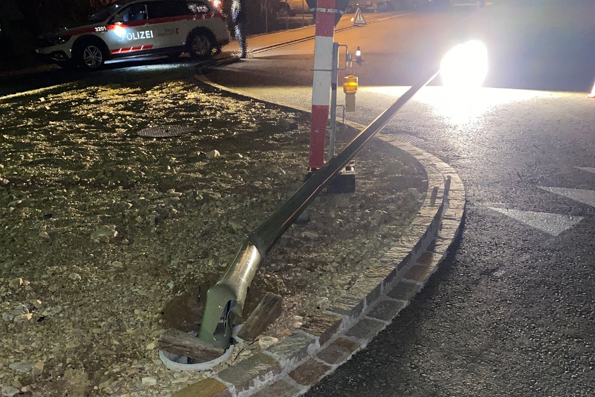 Durch einen Mitarbeiter der EBL konnte der beschädigte Kandelaber von der Strasse entfernt und gesichert werden.