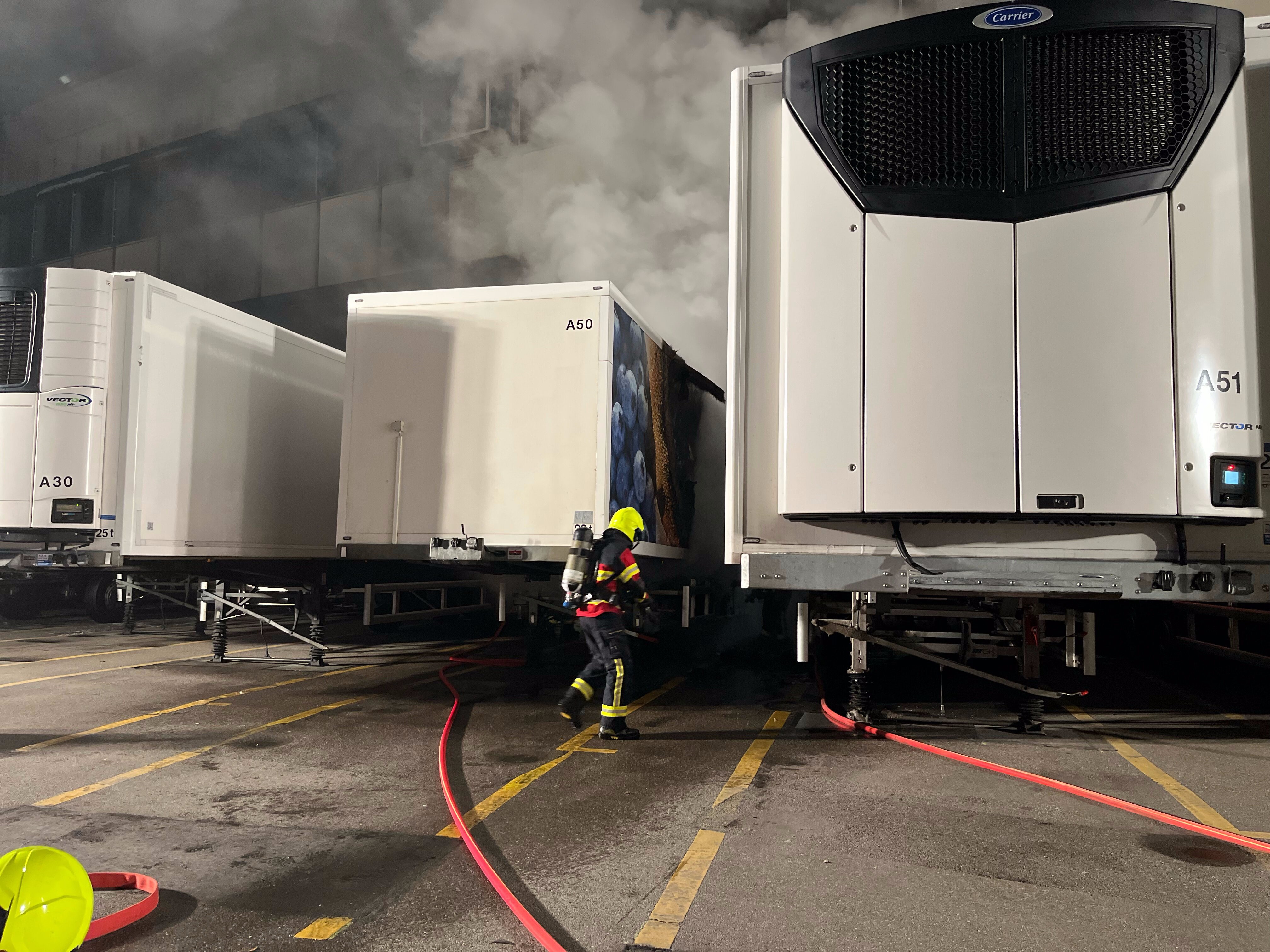 Ein Anwohner bemerkte den brennenden Anhänger und verständigte die Kantonale Notrufzentrale St.Gallen. Die eintreffenden Rettungskräfte trafen einen brennenden Kühlanhänger, welcher an der Laderampe eines Logistikgebäudes abgestellt war, an. Die ausgerückte Feuerwehr brachte den Brand unter Kontrolle und konnte ein Übergreifen auf weitere Anhänger und das Gebäude verhindern. Am betroffenen Anhänger, dem direkt daneben abgestellten Anhänger sowie an der Laderampe und der Gebäude-Aussenhülle entstand Sachschaden im Wert von mehreren hunderttausend Franken. Mutmasslich war der Brand beim Kühlaggregat des Anhängers ausgebrochen.