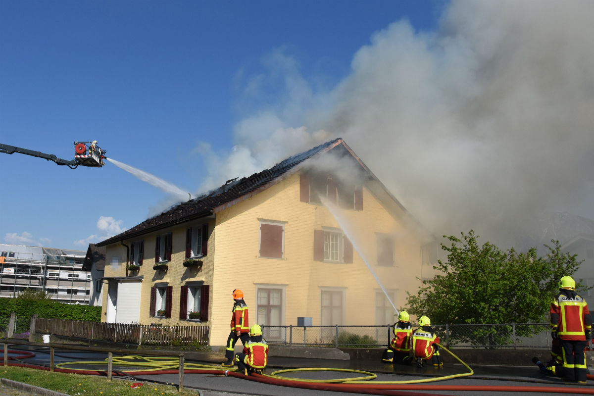 Am Sonntag (22.04.2018), kurz nach 16.30 Uhr, ist in Grabs in ein Mehrfamilienhaus an der Dorfstrasse in Vollbrand geraten. Der Sachschaden beträgt mehrere hunderttausend Franken.