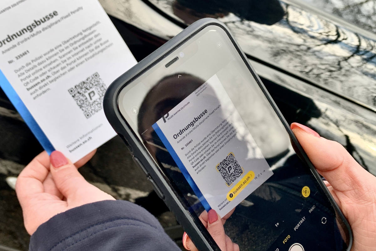 Anfang dieses Jahres wurde – mit Ausnahme der Stadt Grenchen – im gesamten Kanton ein neues System für die Erfassung und Verarbeitung von Ordnungsbussen eingeführt. Vor Ort ausgestellte Bussenzettel enthalten neu einen QR-Code. Standardmässig kommt dies nun auch in Grenchen zur Anwendung. Die Mitarbeitenden der Stadtpolizei Grenchen verwenden ab dem 1. September 2022 die neuen Unterlagen mit Logo der Kantonspolizei Solothurn, wenn sie eine Ordnungsbusse vor Ort ausstellen müssen.