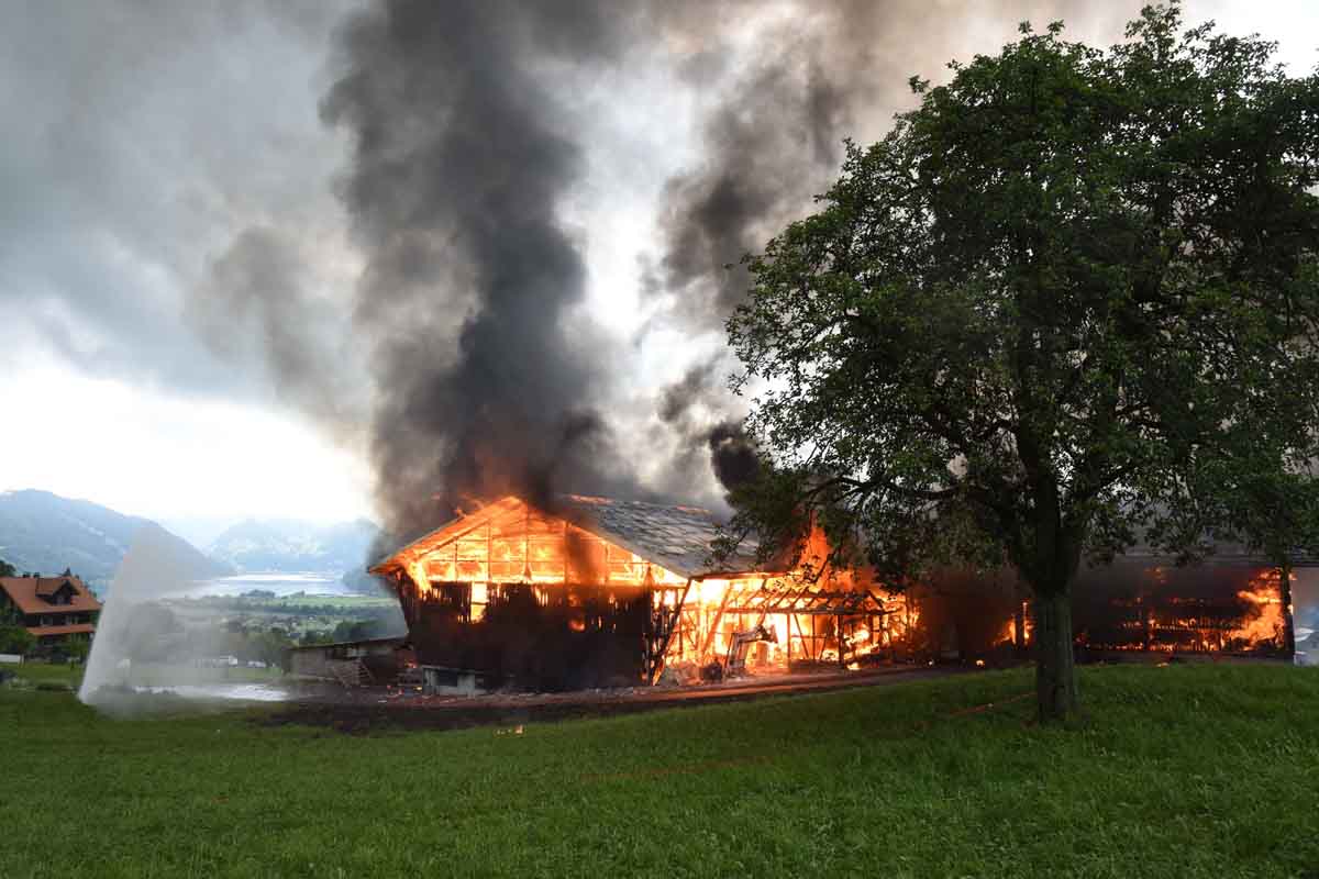 Beim Eintreffen der ersten Einsatzkräfte stand ein Teil der Scheune bereits in Vollbrand. Der Grossteil des Viehs, welches sich im Stall befand, konnte durch den Landwirt vor Eintreffen der Feuerwehr gerettet werden. Vier Kälber fielen jedoch dem Feuer zum Opfer.