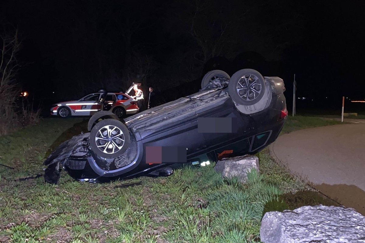 Am Donnerstag, 23. März 2023, um 1.45 Uhr, war ein 26-jähriger Automobilist in Härkingen beim Briefzentrum (Lischmatt) unterwegs. Im Bereich einer Linkskurve, kam er aus noch zu klärenden Gründen rechts von der Strasse ab. In der Folge prallte das Auto gegen einen Quaderstein, überschlug sich und kam am Strassenrand auf dem Dach zum Stillstand.
