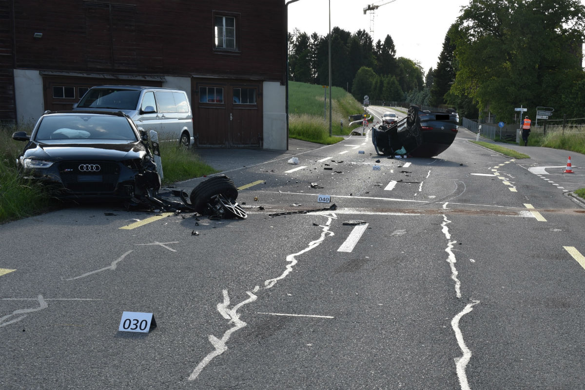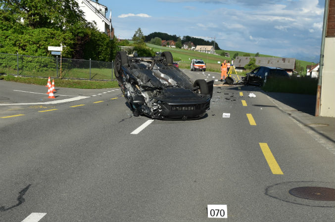 Bei einem Verkehrsunfall zwischen zwei Personenwagen sind am frühen Donnerstagabend (24.5.2018) in Ebertswil (Gemeindegebiet Hausen a. A.) beide Lenker verletzt worden.