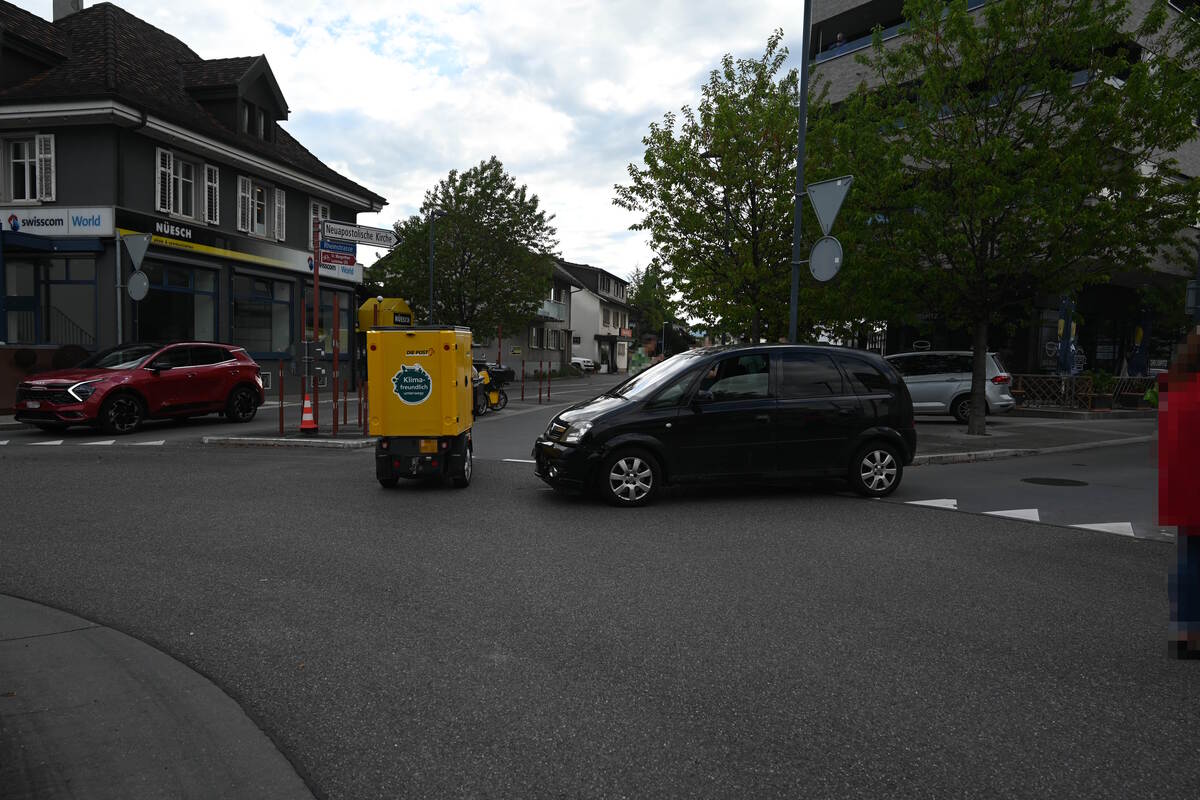 Am Samstag (18.05.2024, kurz vor 8:45 Uhr, ereignete sich im Kreisverkehr an der Bahnhofstrasse ein Verkehrsunfall zwischen einem Auto und einem dreirädrigen Kleinmotorrad. Der Fahrer des Kleinmotorrads wurde leicht verletzt und vom Rettungsdienst ins Spital gebracht.